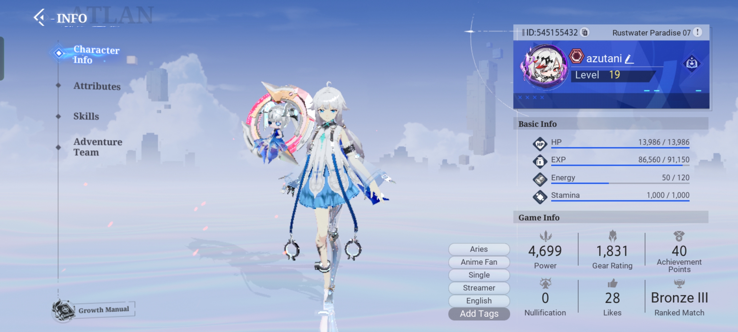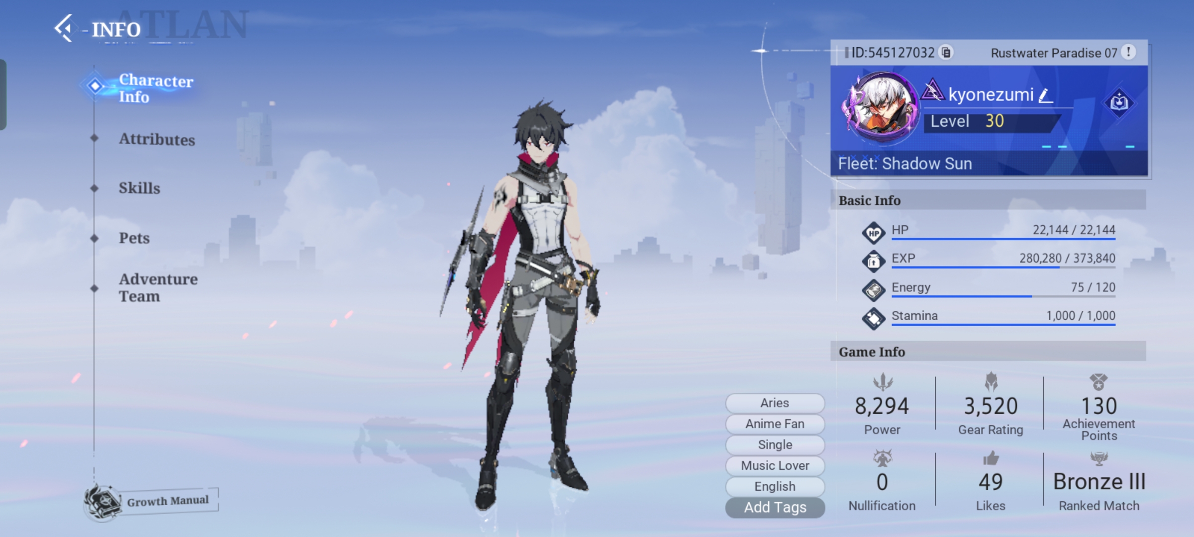 now, i'm used to screenshot my profile to see the progress, but most of the profiles here are from gacha games, so there's a reason why i screenshot them. there will be some thoughts about it and how i'll recommend it, but it's up to you if you want to play it or not.
